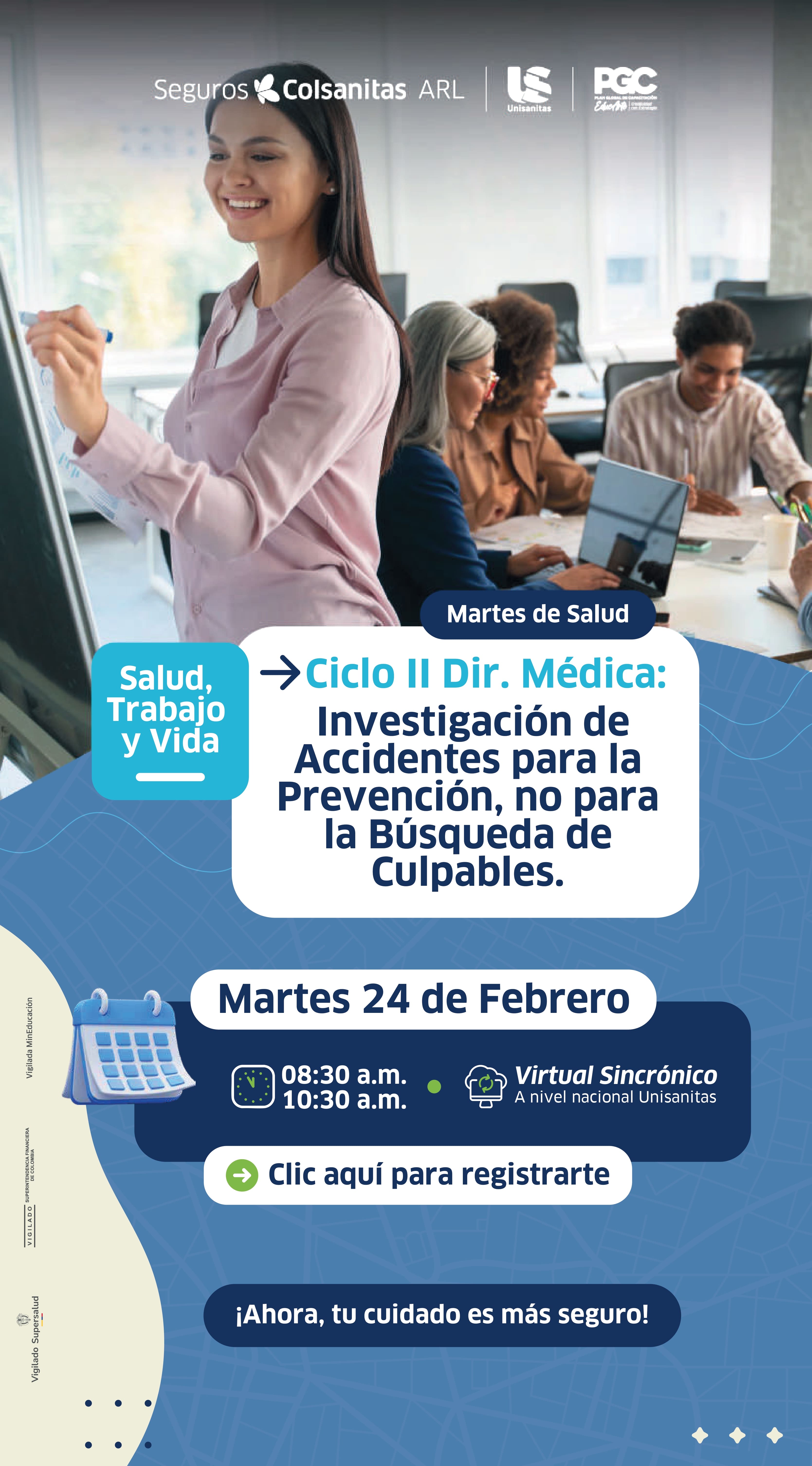 La ARL Seguros Colsanitas pone a disposición de nuestros afiliados el Plan Global de Capacitación, el cual cuenta con temas de interés en salud y seguridad en el trabajo para brindar herramientas útiles en la prevención de accidentes y enfermedades laborales. ¡Consúltalo e inscríbete!